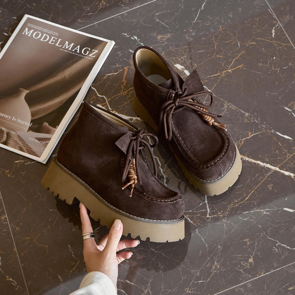 Bottines pour femmes style rétro britannique hiver 2025, super hauteur de talon épaisse, cuir véritable, hauteur de la pointe augmentée, à lacets