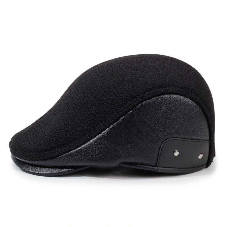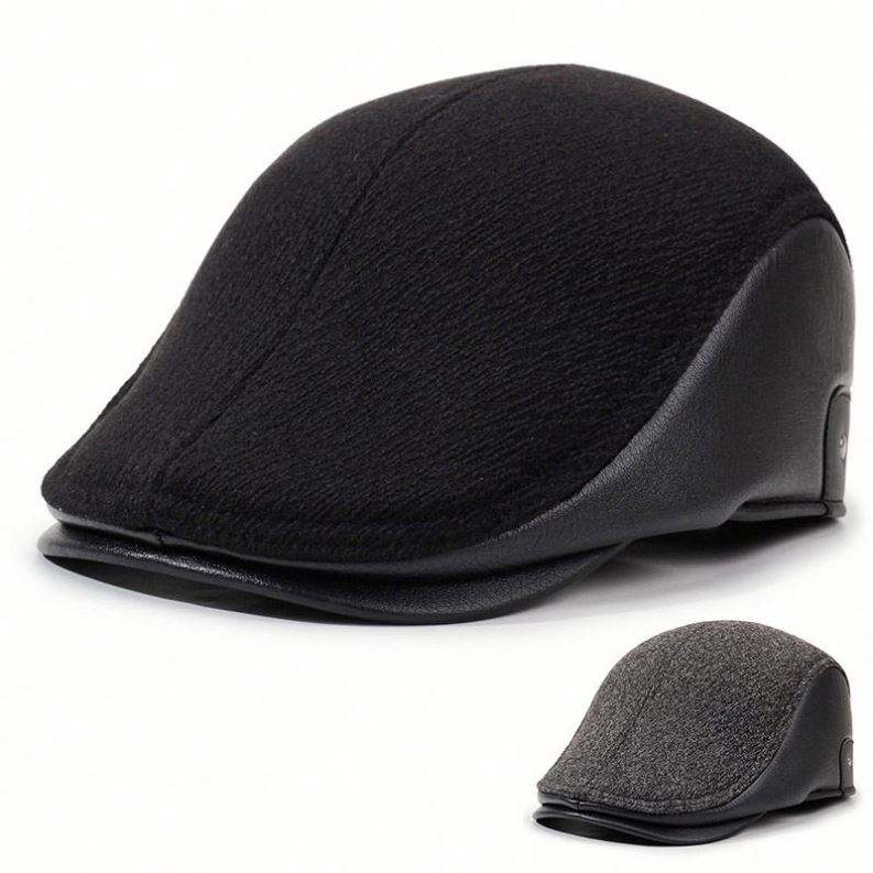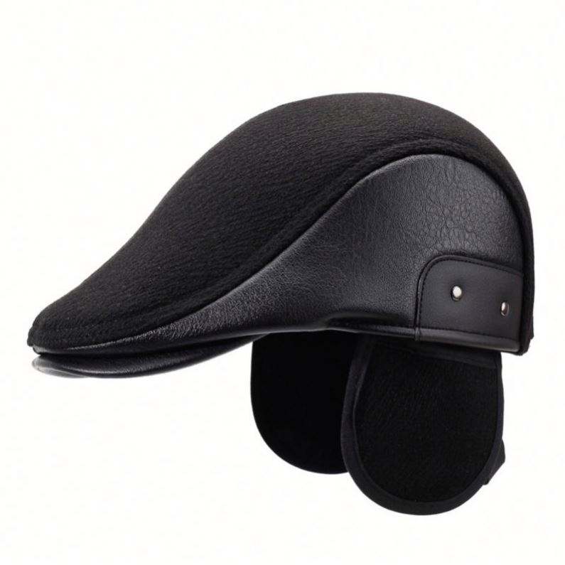 Nouvelle Collection Hiver 2025 – Béret Plat Unisexe pour Personnes Âgées, Chaud et Portable, avec Cache-Oreilles, en PU et Soie, pour Hommes