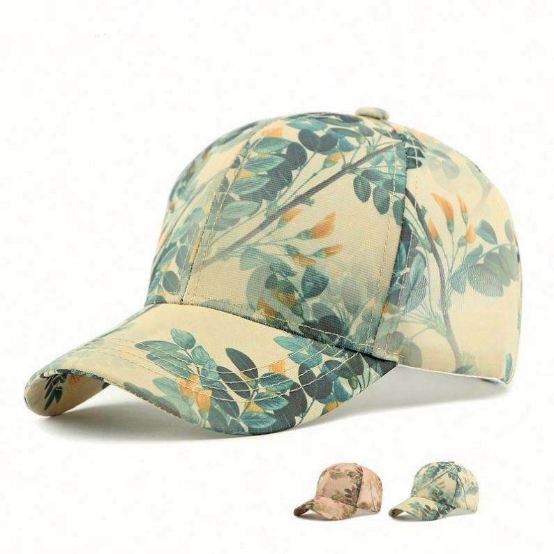 Casquette de baseball ethnique pour femme 2025 – Printemps/Été – Protection solaire extérieure – Personnalisée – Calotte rigide – Tendance – Motif feuille imprimé