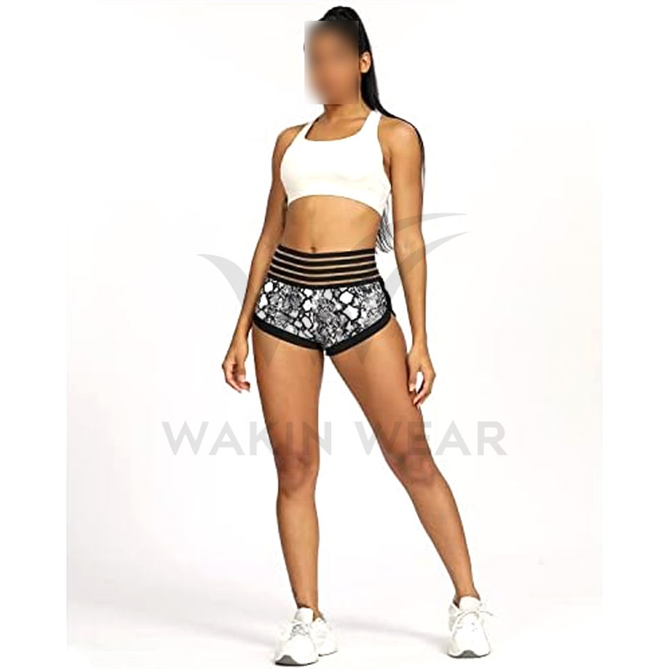 WAKIN WEAR 2025 Short taille haute froncé pour femme, tissu respirant noir blanc en toile pour le fitness en plein air