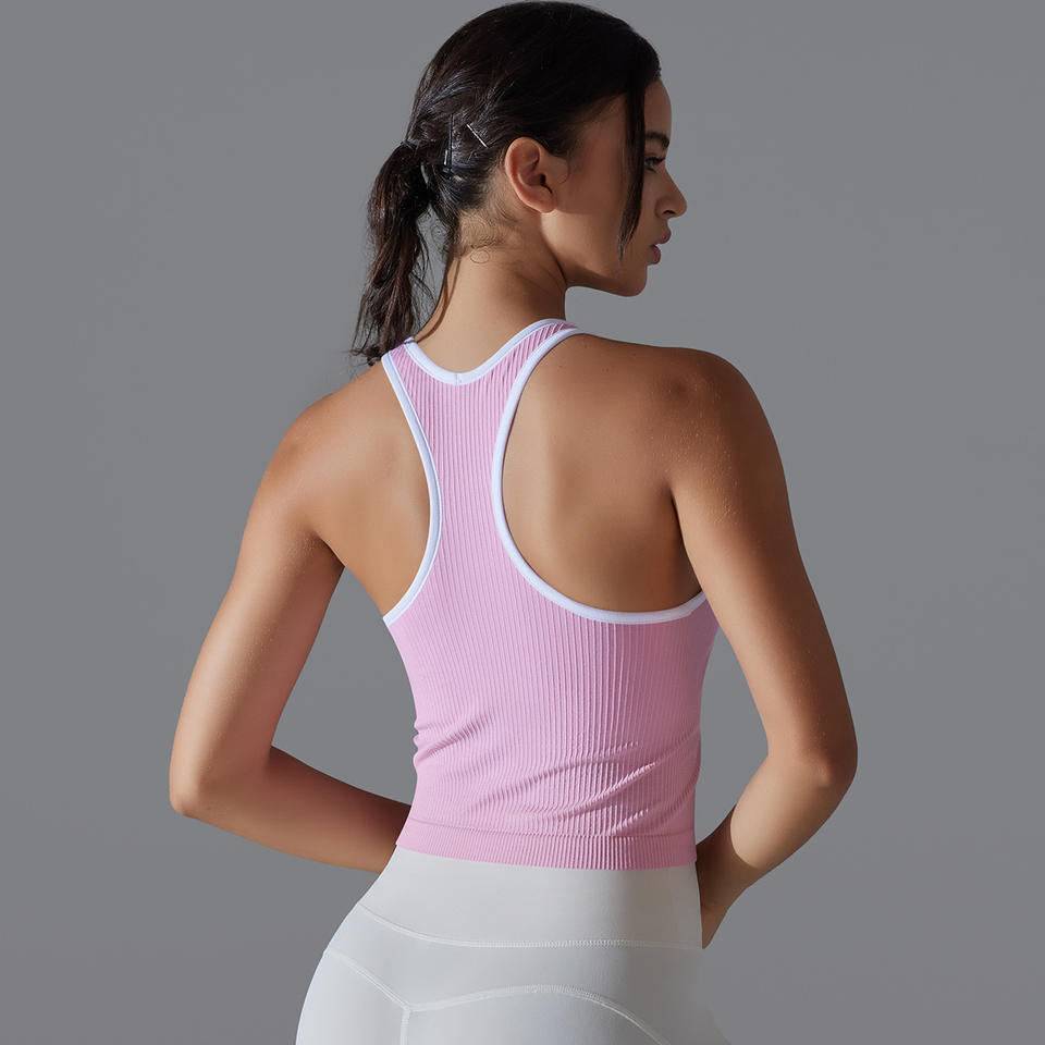 2025 femmes sans couture côtelé course gilets léger respirant haut court séchage rapide course dos hauts de gymnastique Pilates porter des vêtements de sport