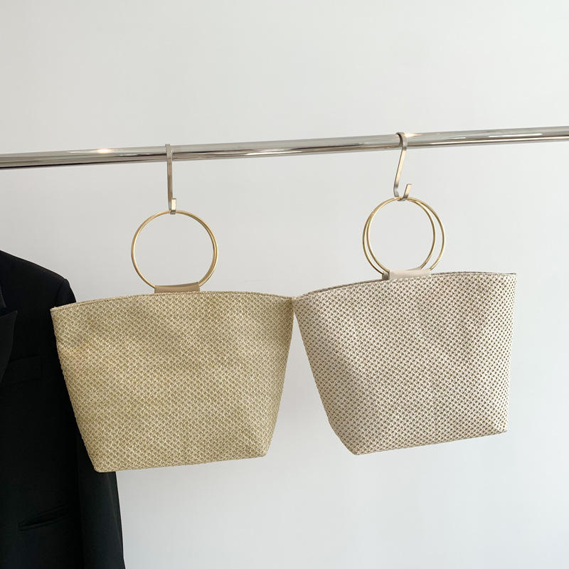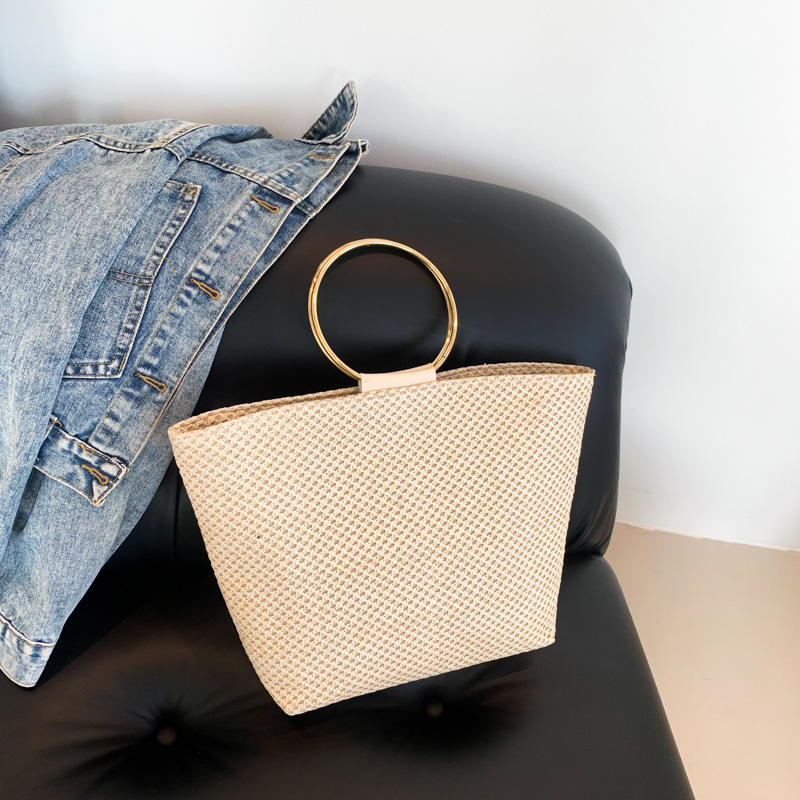 2025 Women's Braided Handbag Single Strap French Simple Ring Large Capacity Fashion Bag New Year's New Style Zip Two Ladies