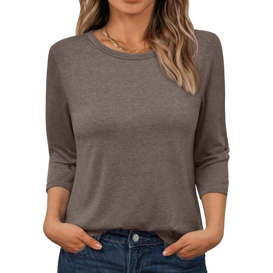 2025 Women's Business Casual 3/4 Length Blouse Fall Trends Silk Basic Tee Loose Fit Long Sleeve Top in XL Size