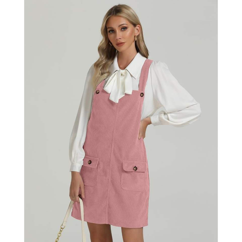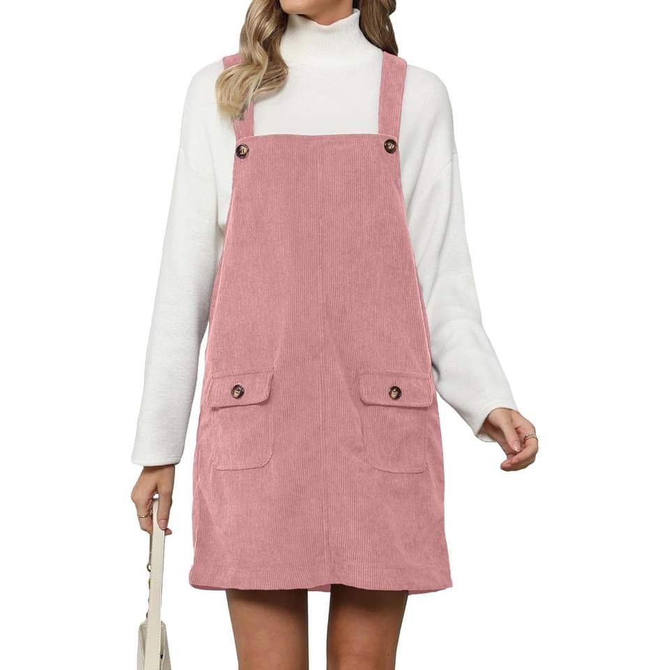 2025 Women's Casual Corduroy Overall Dress Elegant Short Overalls Pinafore with Adjustable Straps and Pockets