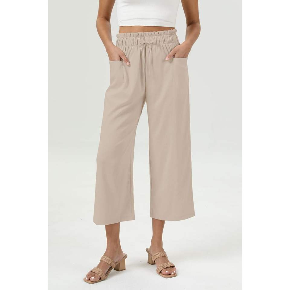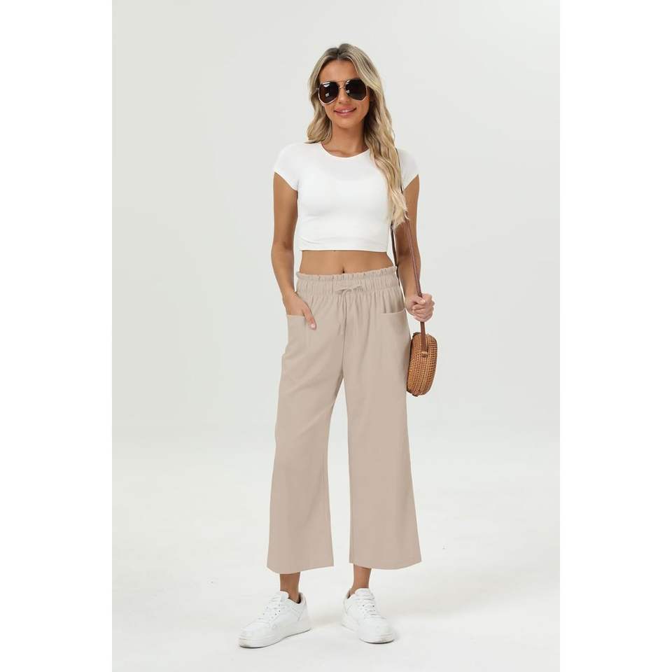 2025 Women's Casual Wide Leg Linen Pants High Waist Drawstring Flowy Palazzo Trousers with Pockets Breathable Design