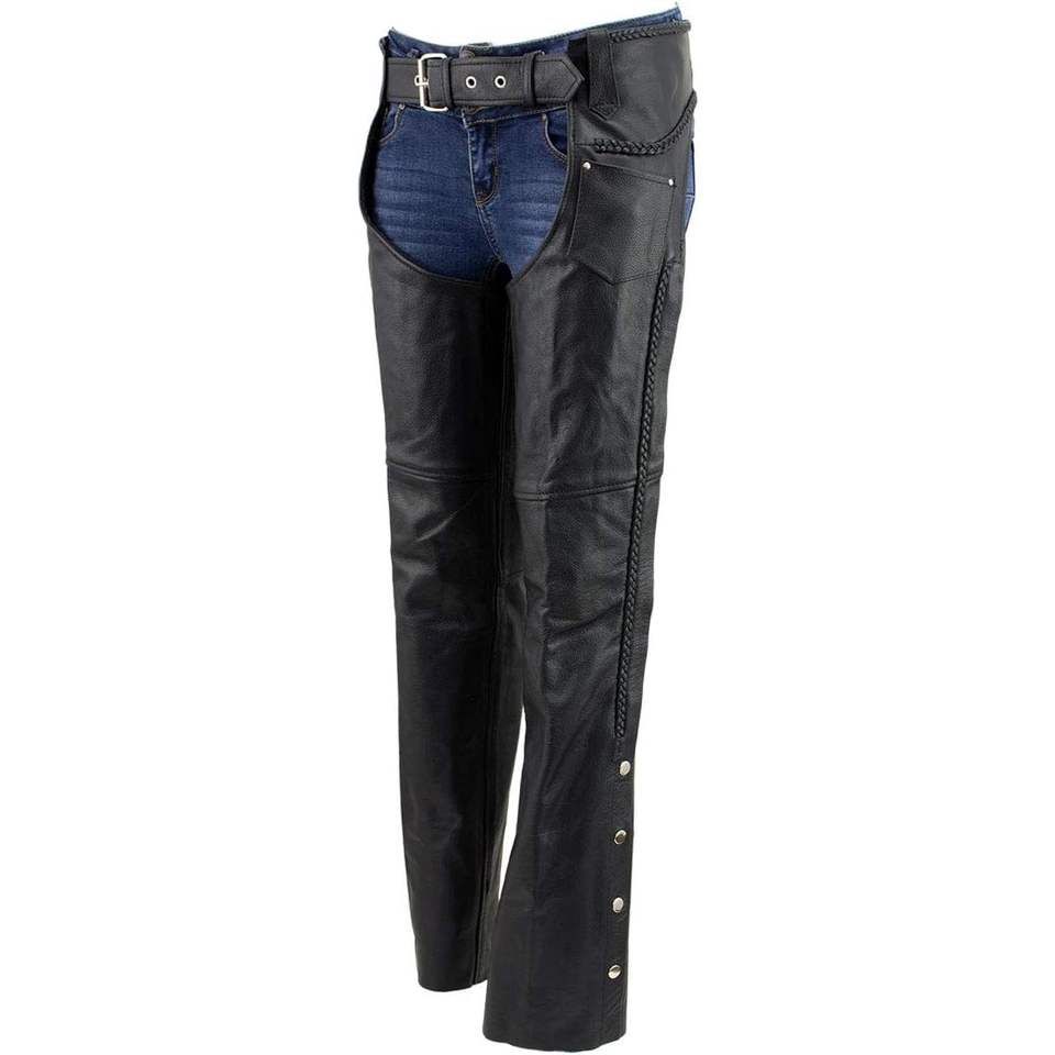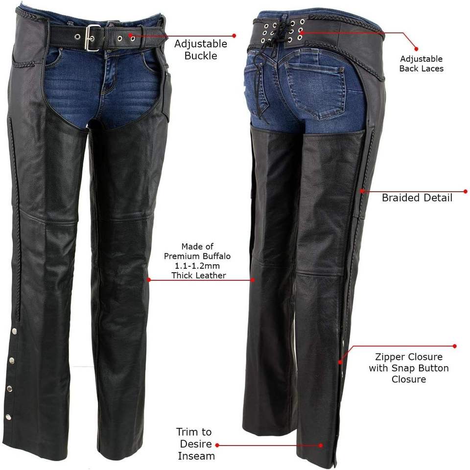 2025 Women's Classic Black Premium Leather Motorcycle Biker Protective Chaps 22" Auto Racing Wear