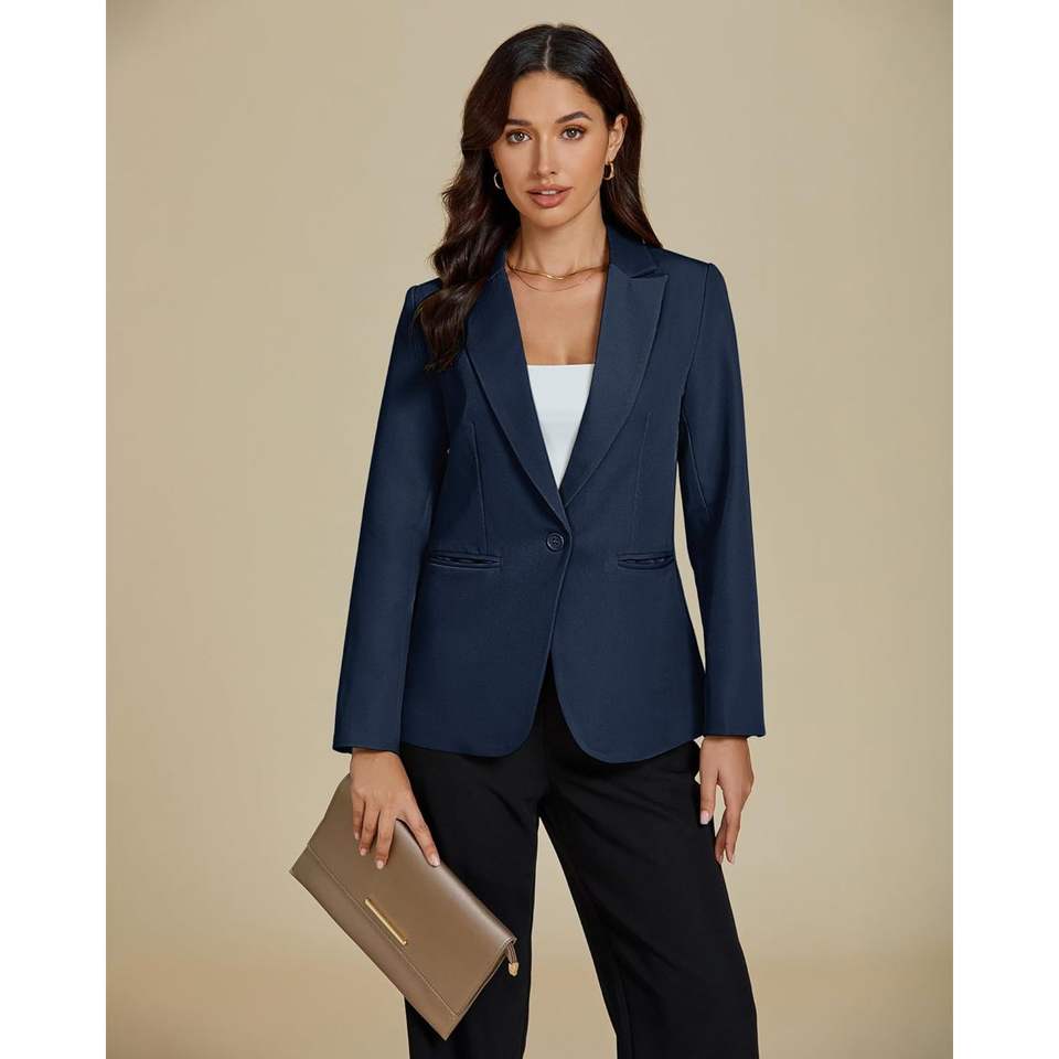 2025 Women's Dressy Office Work Blazer Long Sleeve Lapel Business Casual Suit with Pockets and Feathers Decoration