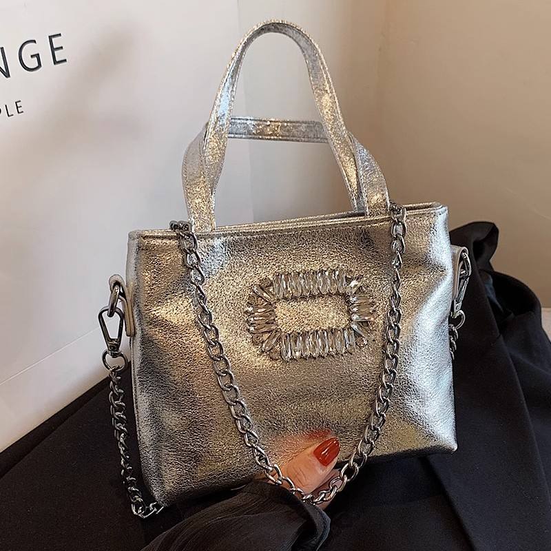 2025 Women's Fashionable Summer Dress Bag PU Zip Leather Popular Bucket Bag Texture Single Shoulder Crossbody Design Chain