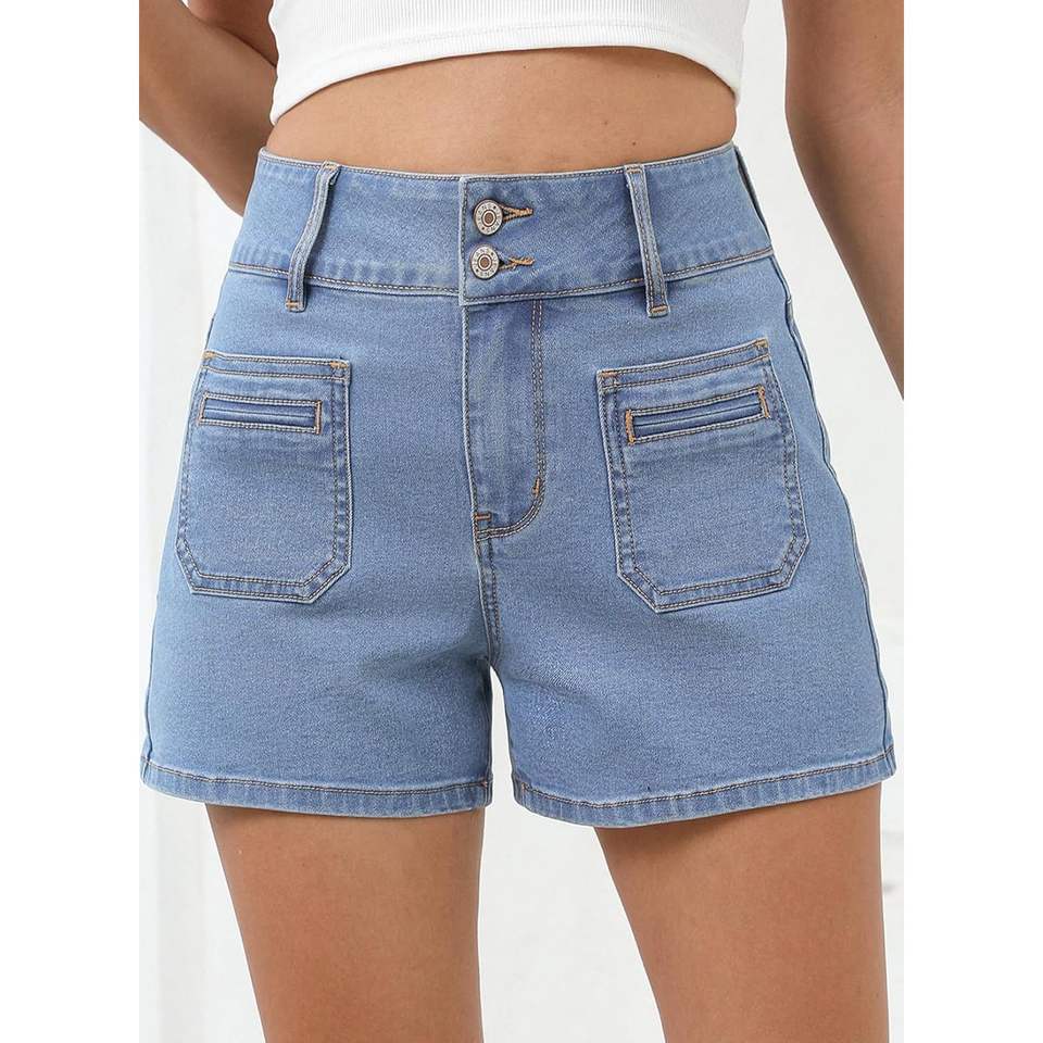 2025 Women's High-Waisted Jean Shorts Stretchy Mid-Waist Tummy Control Skinny Vintage Summer Denim Shorts Button Sexy