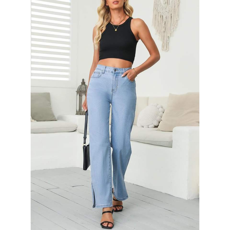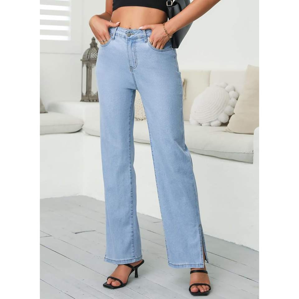 2025 Women's High Waisted Stretch Denim Pants XL Size Breathable Straight Leg Jeans in Wide Leg Pencil Pants Style