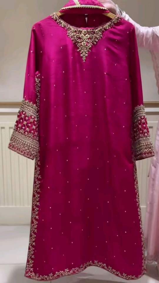 2025@Women's Indian/Pakistani Kurta, Salwar & Dupatta Dress with Embellished Stone, Resham, Pearl, Crystal Glass Beads Zari work
