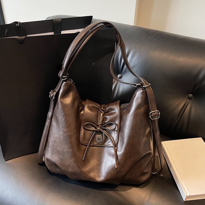 2025 Women's Korean Academy Style Ins Fashionable Retro Large Capacity PU Tote Bag Backpack Women's Shoulder Bag