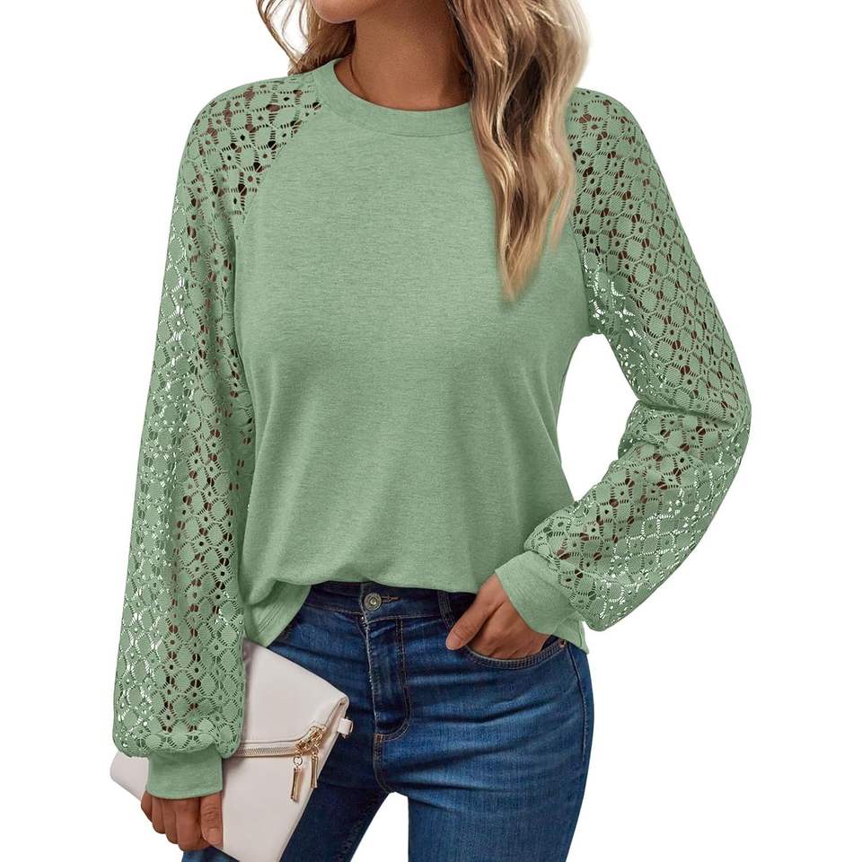 2025 Women's Long Sleeve Crewneck Blouses Fall Fashion 2025 Trendy Loose Outfits XL Size Lace Business Casual Dressy Tops