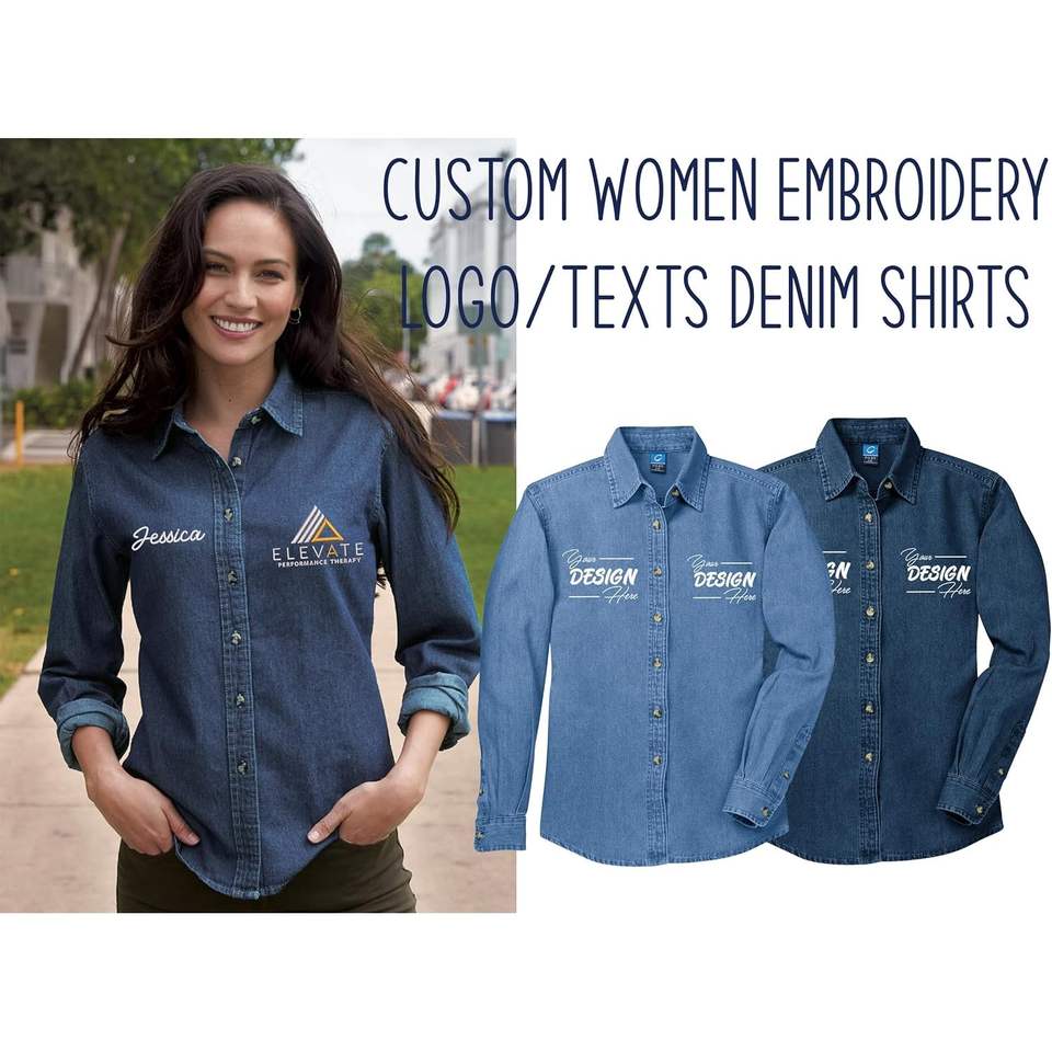 2025 Women's Long Sleeve Denim Shirts LSP10 Custom Embroidery Add Your Own Logo Texts Personalized Blouses & Shirts