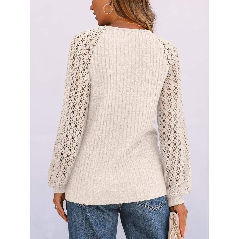 2025 Women's Long Sleeve Dressy Tops Fall Fashion Lightweight Business Casual Blouses with Lace Trendy Work Shirts