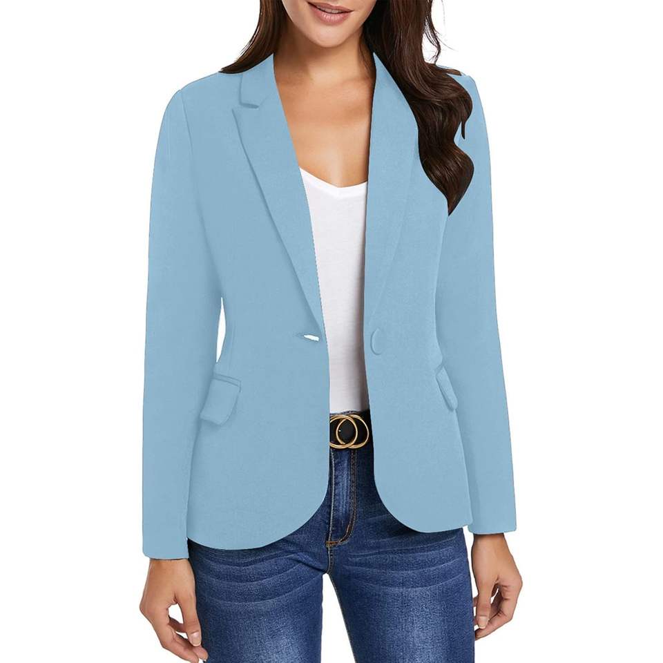 2025 Women's Long Sleeve Formal Button Down Jacket Notch Lapel Blazer with Pockets