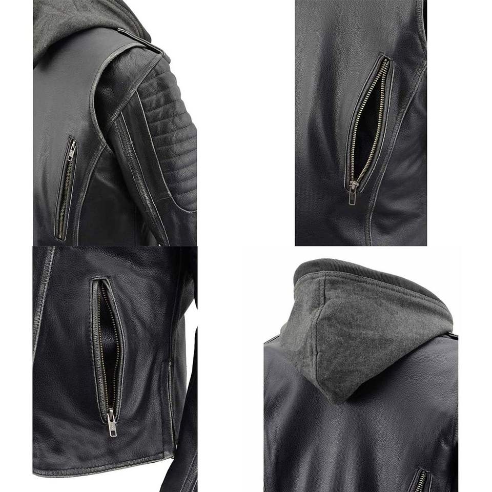 2025 Women's MLL2516 Black Leather Rub-Off Jacket with Hoodie