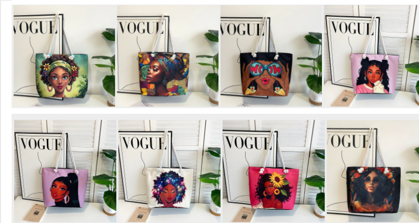 Sac à Bandoulière Toile Imprimé Grande Capacité pour Femme 2025, Fermeture Éclair, Sac à Main et Cabas de Shopping Transfrontalier