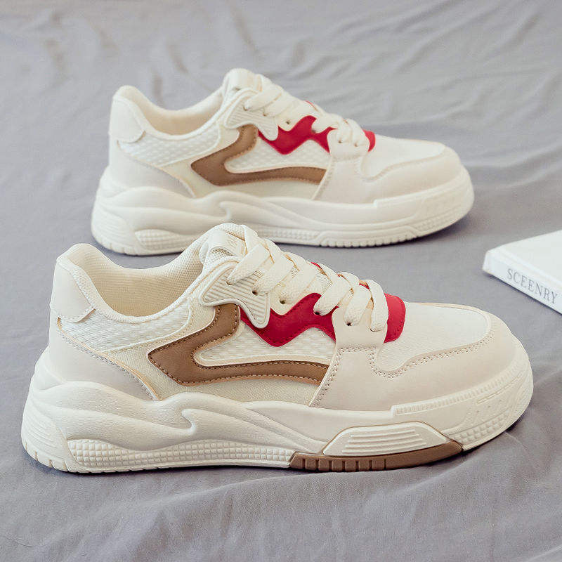 2025 Women's Shoes White Striped Breathable PVC Student Sneakers Chunky Dad Sports Casual Flat Spring New Style