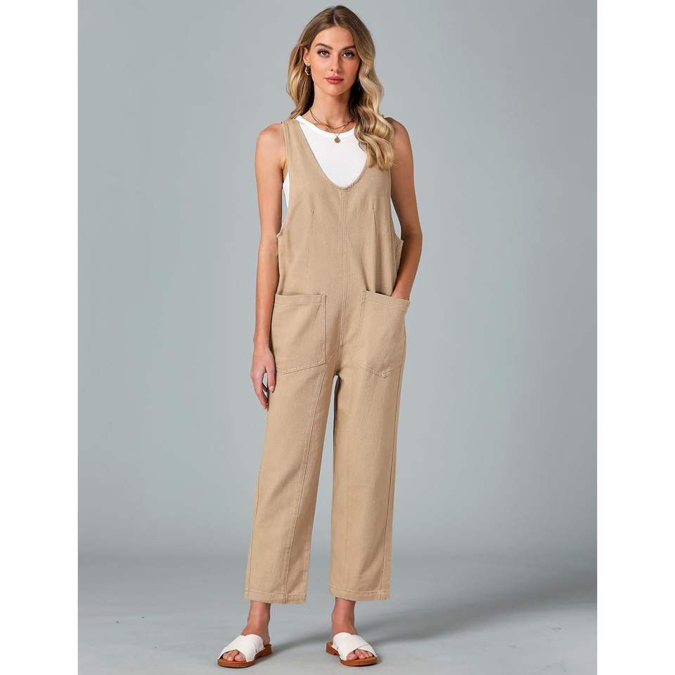 2025 Women's Sleeveless Denim Jumpsuit Summer Casual Baggy Overall with Pockets Loose Fit Jean Overalls Formal Style