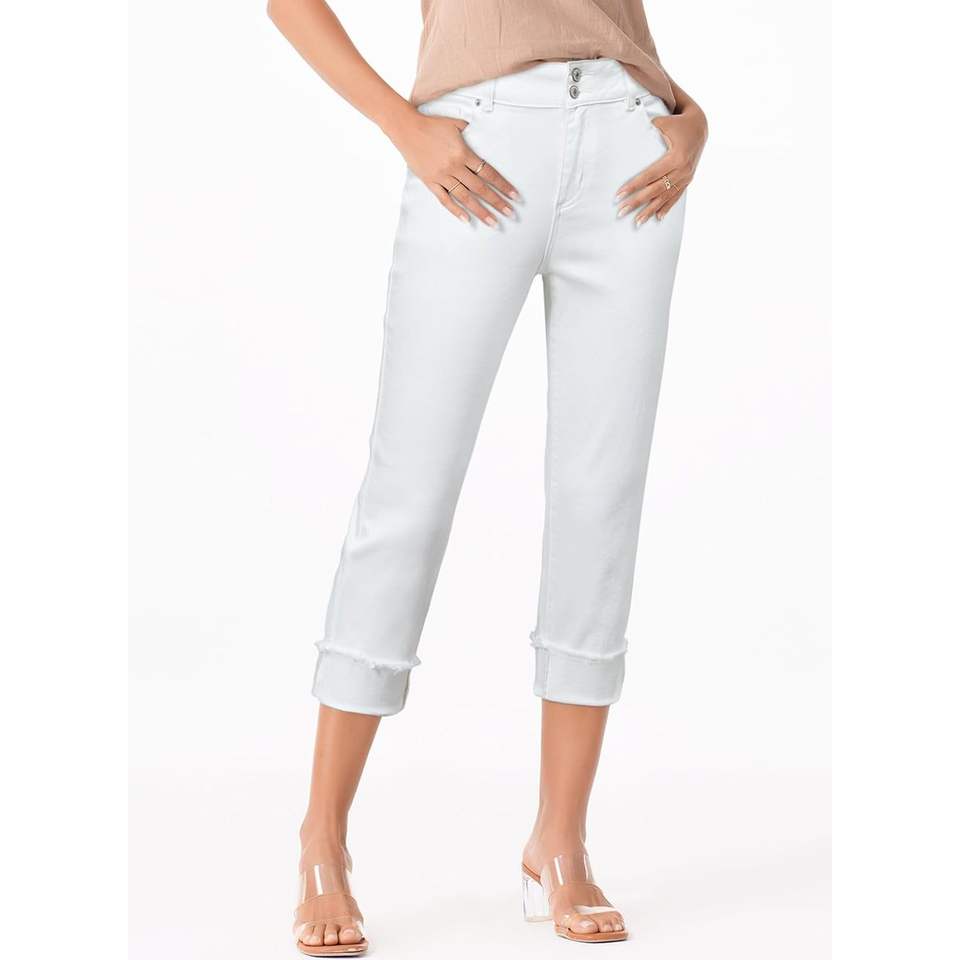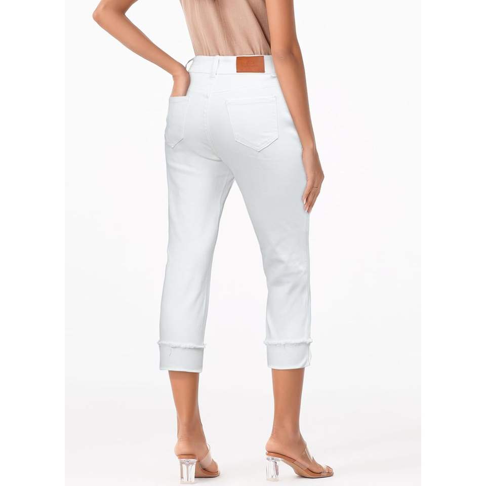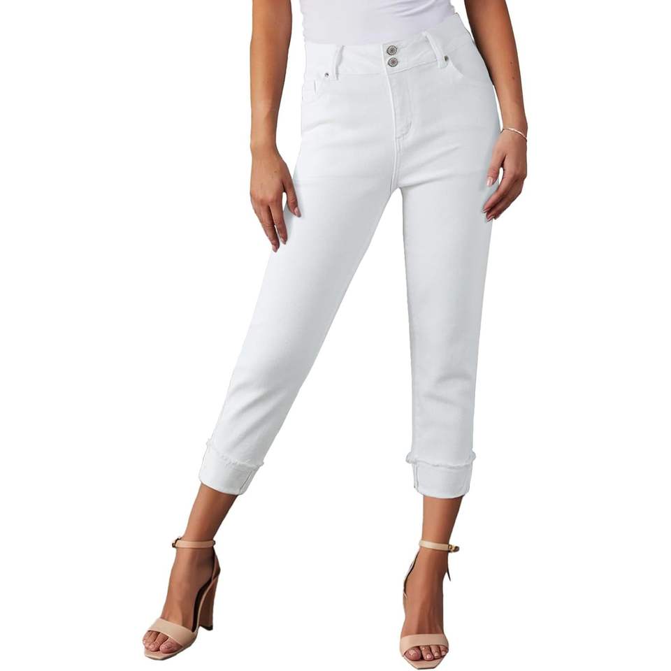 2025 Women's Summer Capri Pants High Waisted Stretchy Roll-Up Skinny Cropped Jeans Zimbaplatinum Color