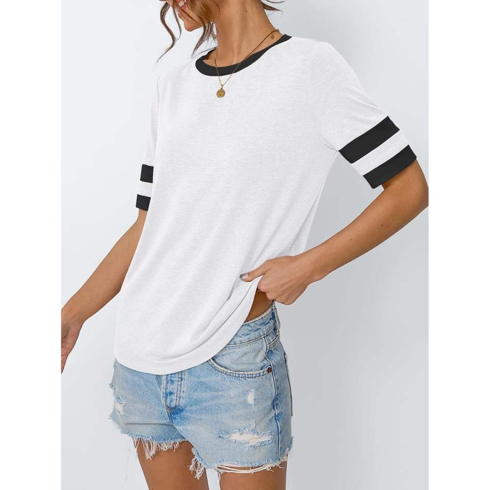2025 Women's Summer Tops 2025 Spring Trendy Fashion Tees Casual Dressy Crewneck Clothes Basic Outfits with Short Sleeves