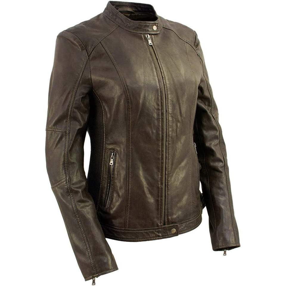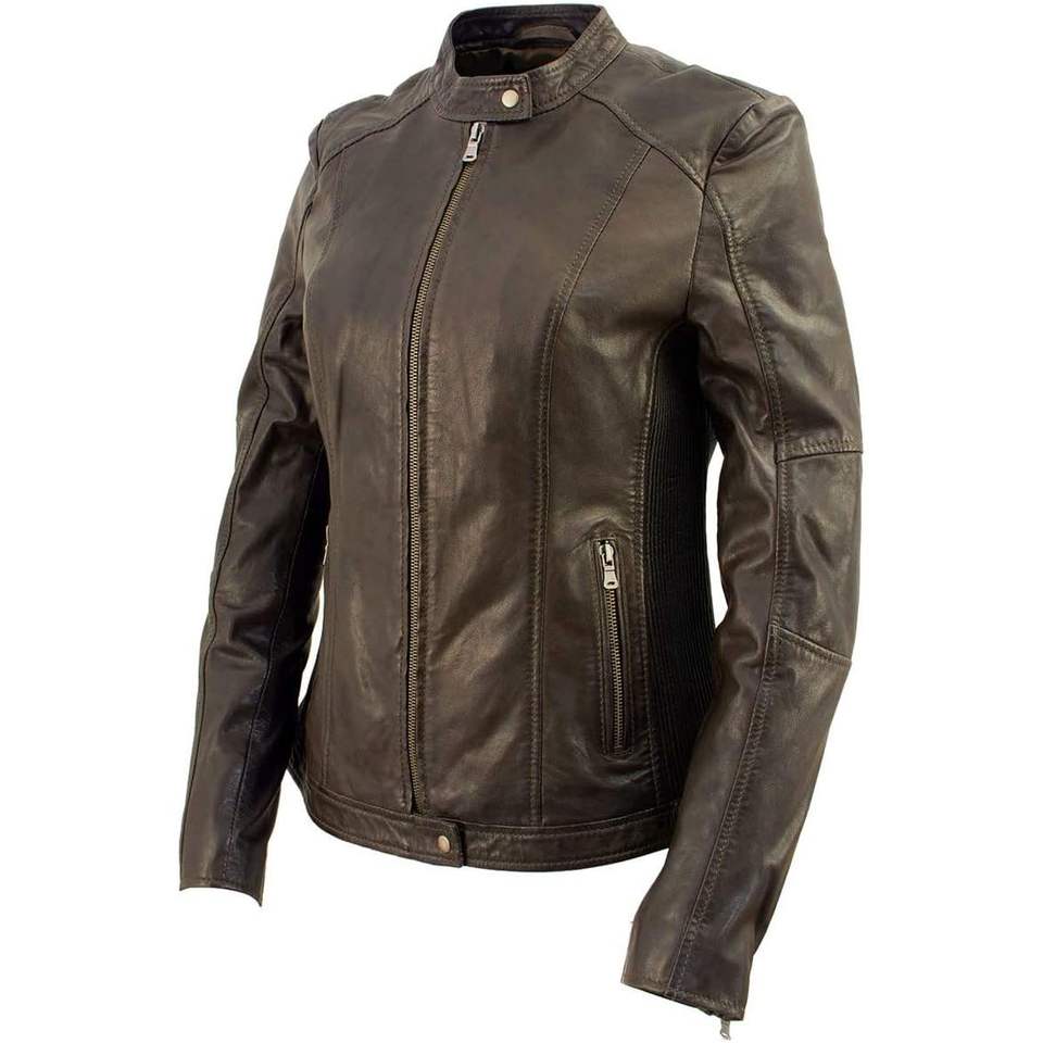 2025 Women's Vintage SFL2813 Moto Style Leather Jacket Black Fashion Auto & Motorcycle Racing Wear