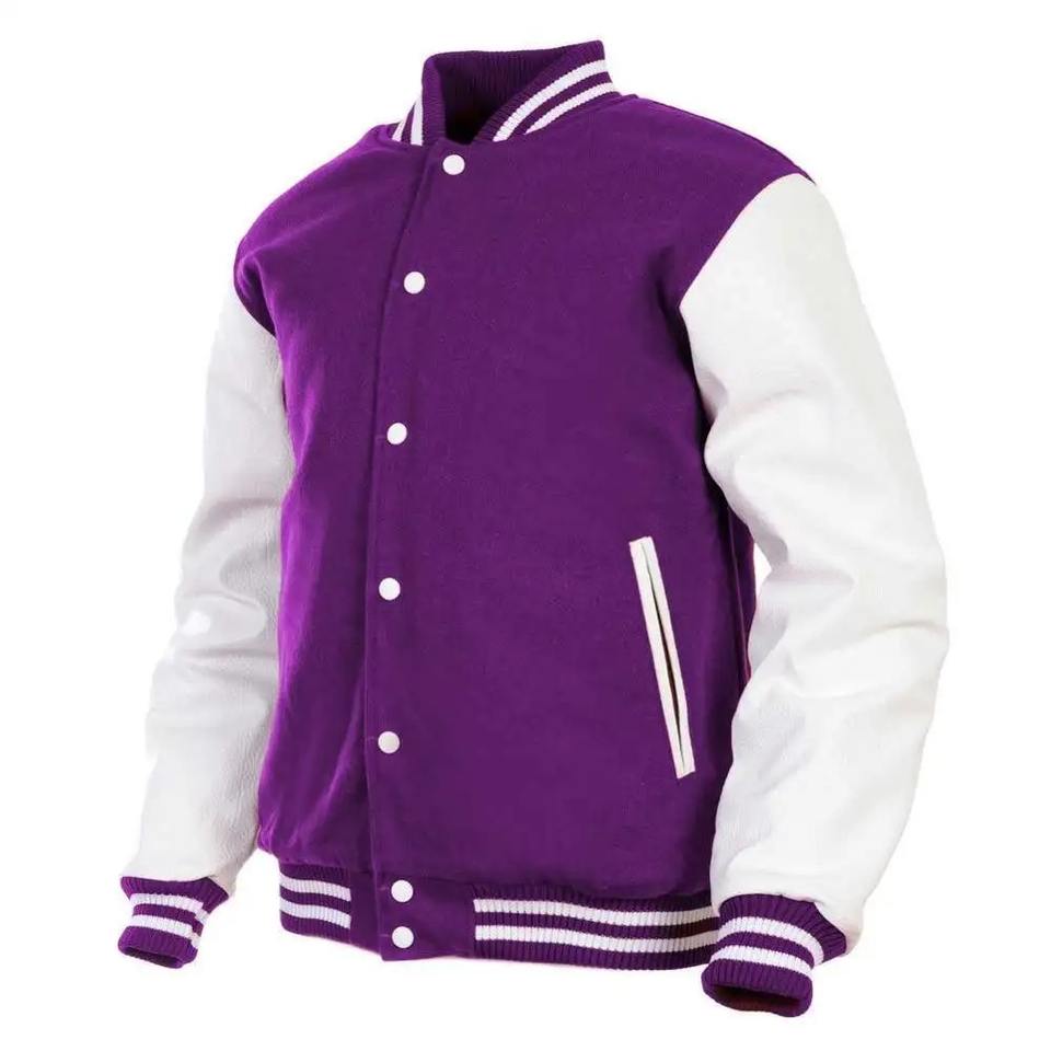 Veste universitaire pour hommes en laine 2025 avec bras en cuir véritable College Baseball Varsity Jacket Service OEM disponible