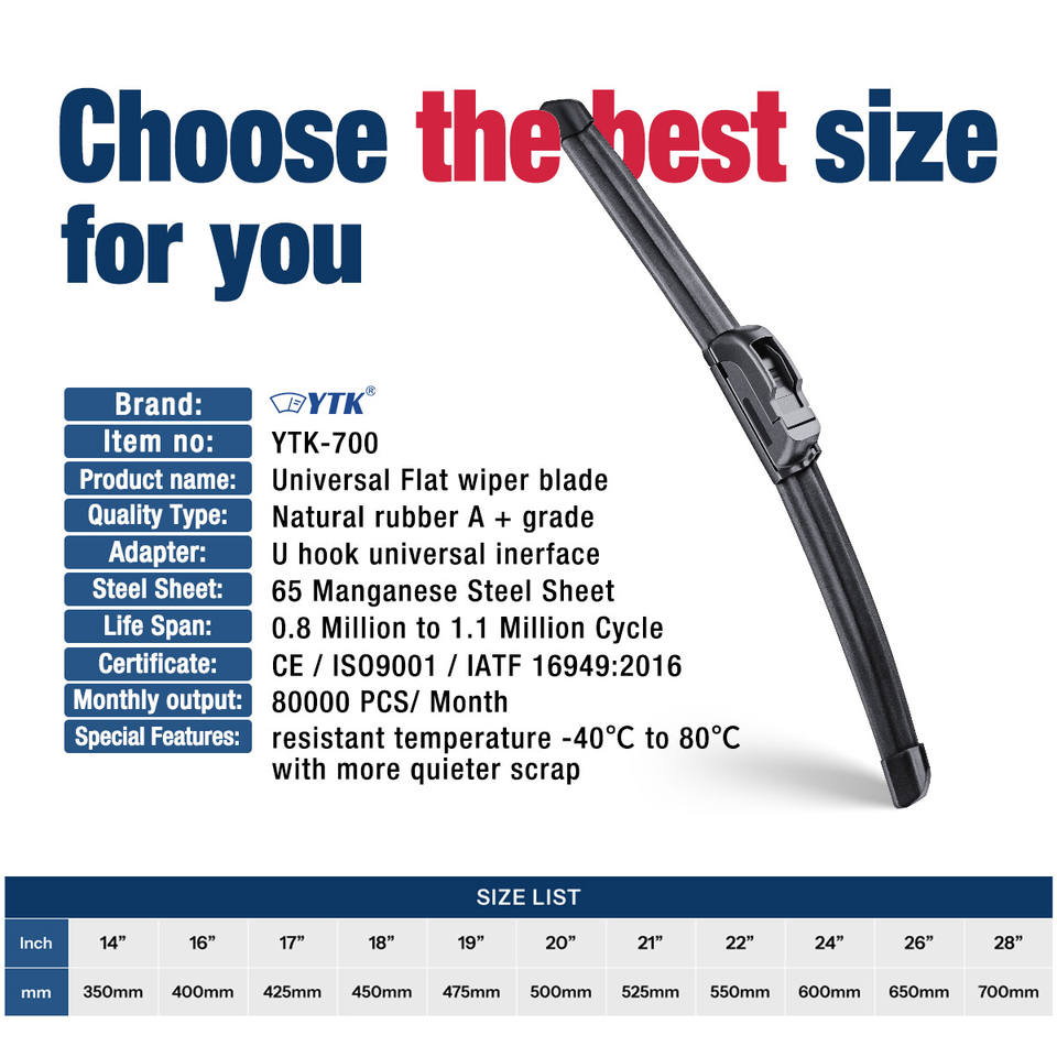 2025 YTK universel avant essuie-glace de voiture désossé bande de caoutchouc sans cadre lame de pare-brise en caoutchouc naturel pour véhicules Fiat
