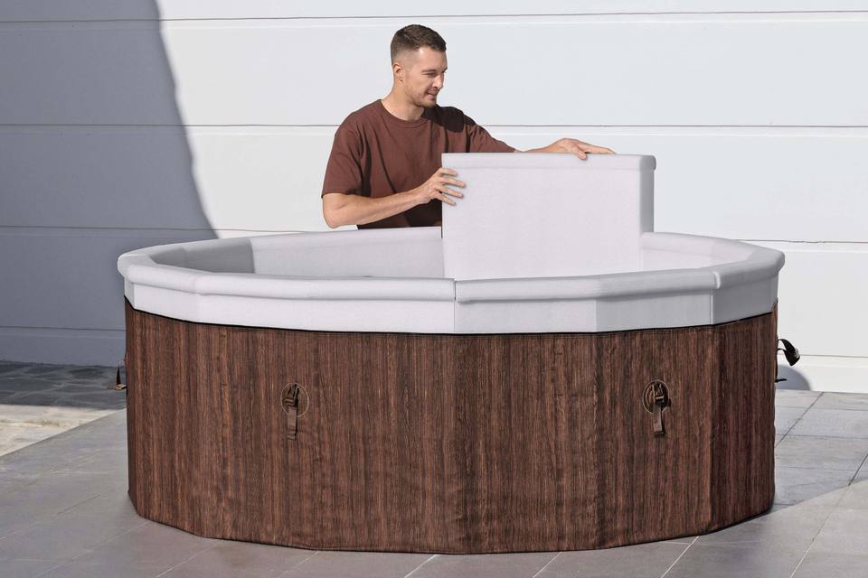 2025 bestway 6001W Extérieur Gonflable 1.90m X 70cm Toronto ThermaCore UltraFit Smart AirJet 7 Marron Bois Rond SPA HOT Tub