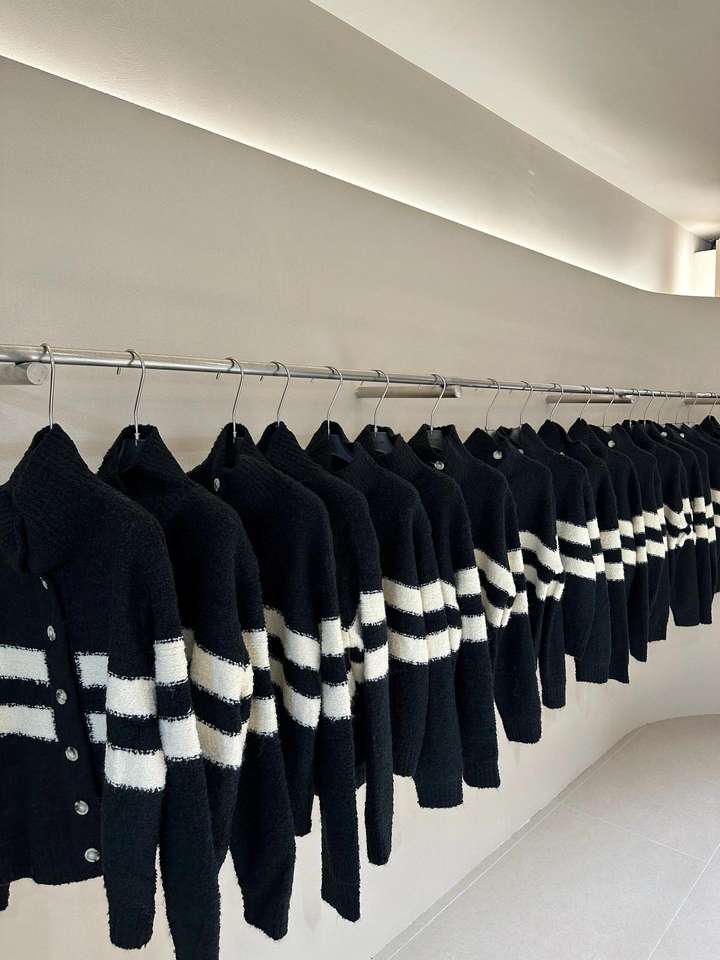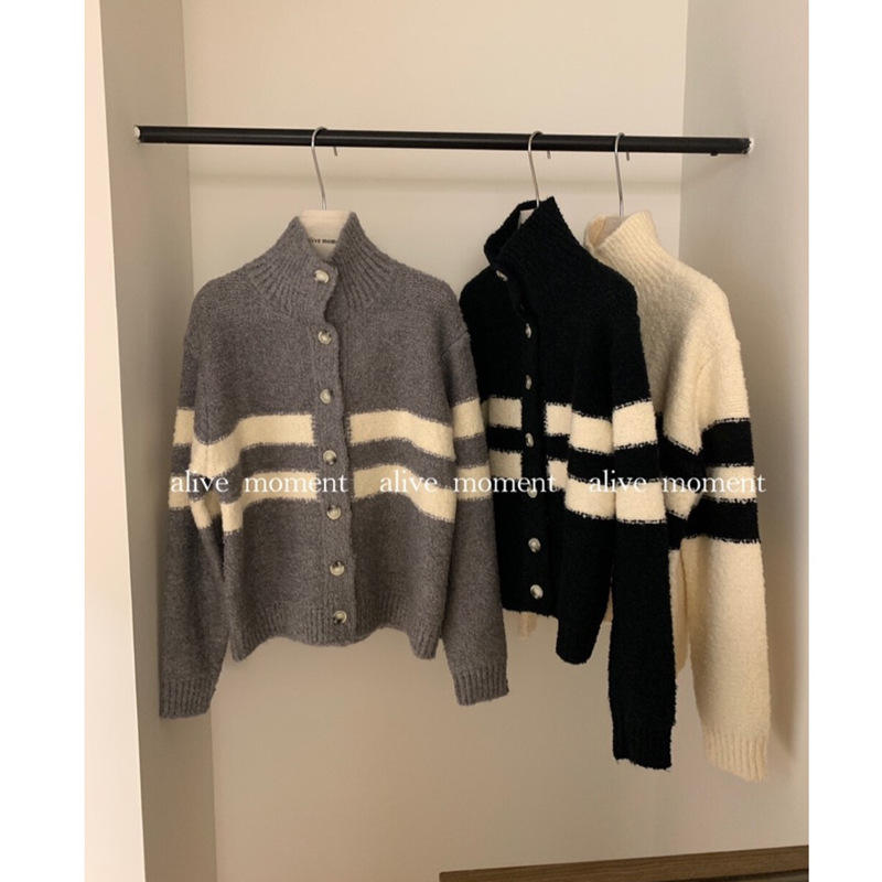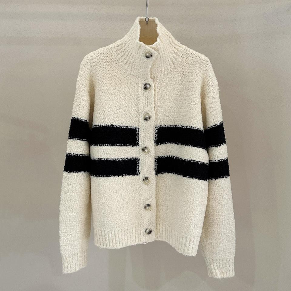 2025 new women's contrast color striped sweater all-match cardigan sweater