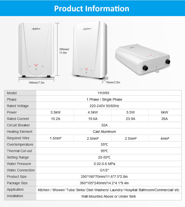 2025 avec thermostat protection de température continue chauffe-eau instantané 5500w pour bassin chauffage salle de lavage