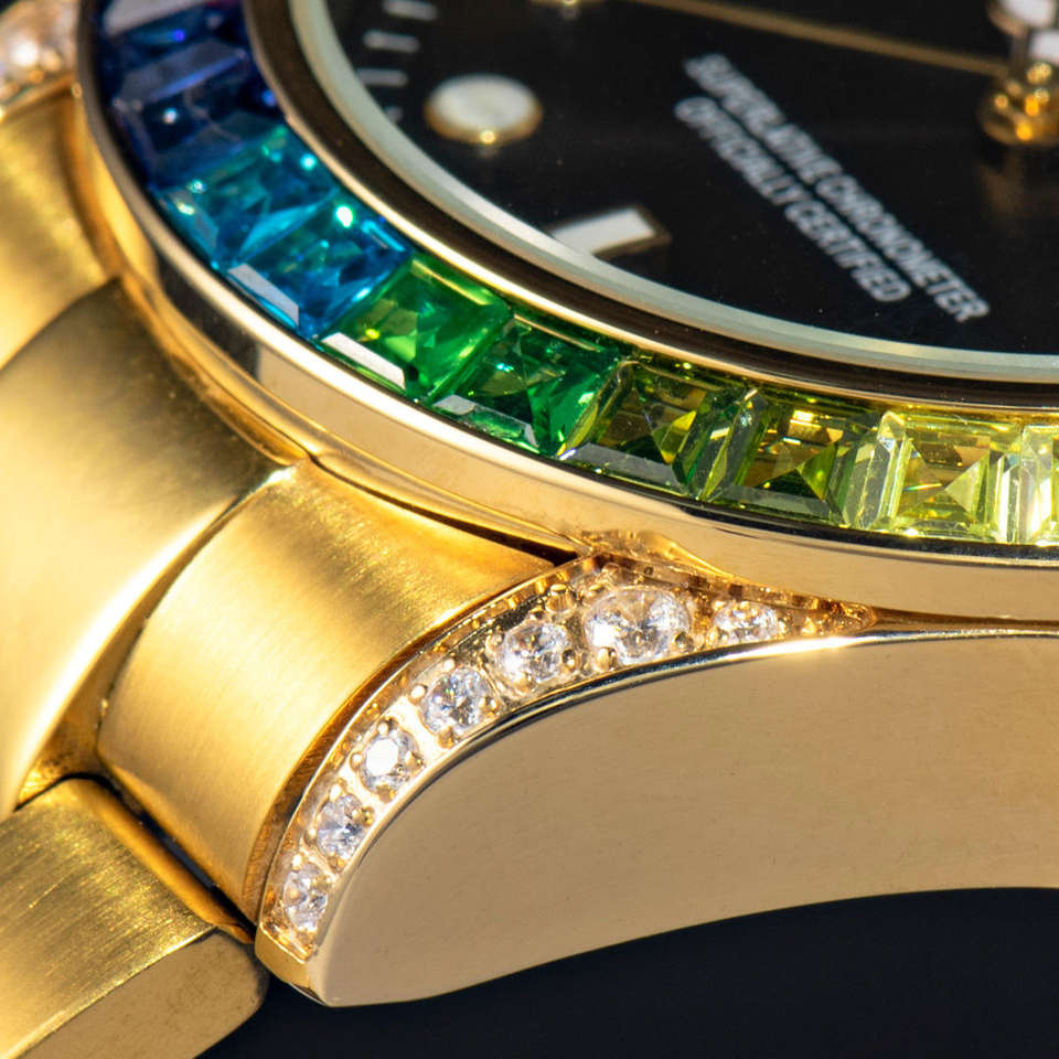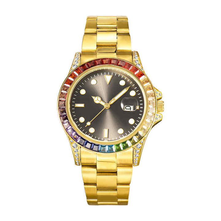 2025Brand Men's Quartz Wristwatch Water Ghost Calendar Hip Hop Style Diamond Water Resistant Leather Sapphire Crystal 42mm 3BAR