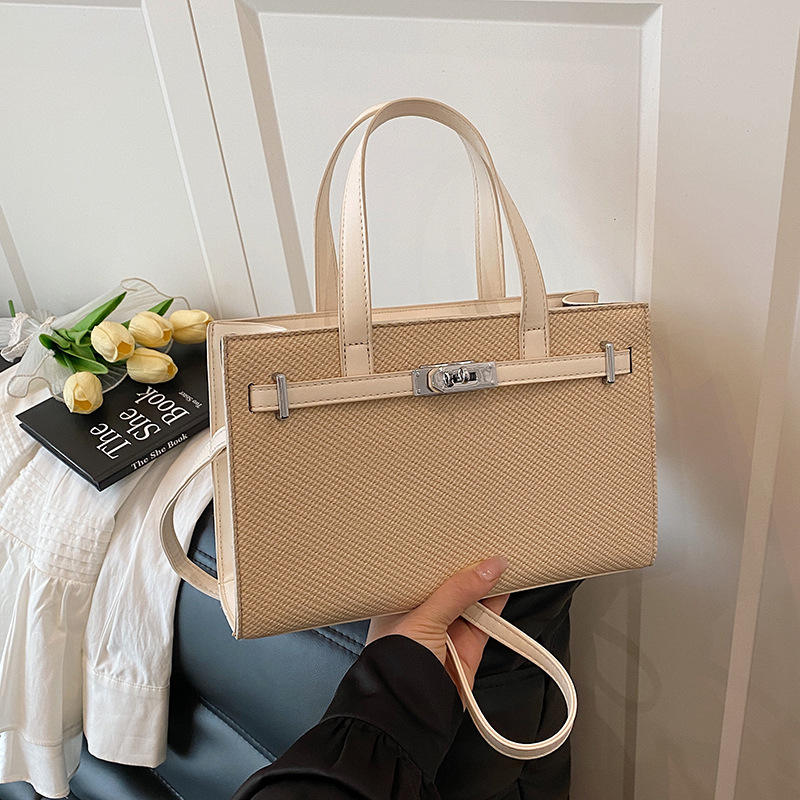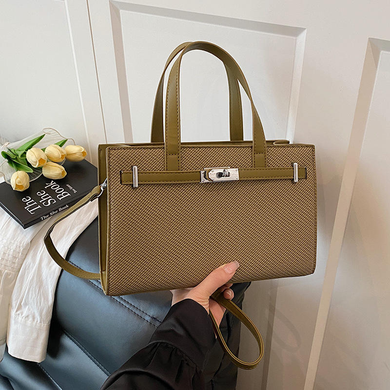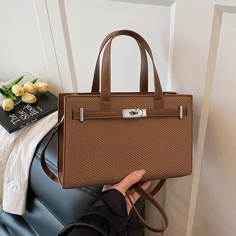 Sac fourre-tout de luxe en PU à bandoulière avec motif litchi et fermeture éclair couleur platine pour femme
