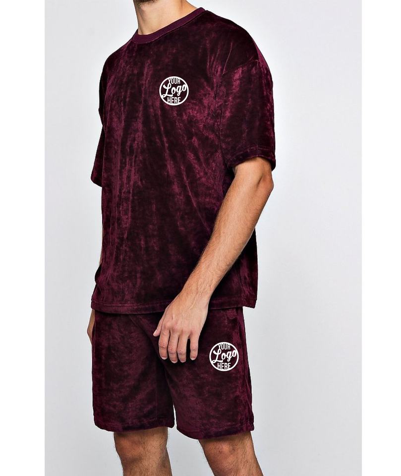 2025 velours ensemble hommes couleur rouge velours t-shirt et court top qualité ensembles jumeaux pour hommes en gros pas cher prix matériel personnalisé