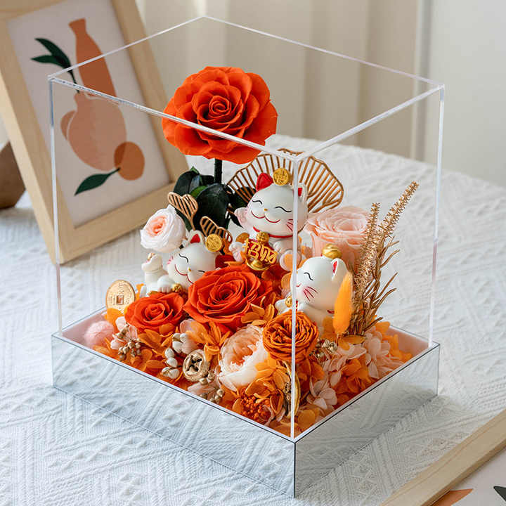 2025 ans fleur éternelle boîte carrée acrylique Premium cadeau mi-automne Festival présent pour petite amie saint valentin Obest qualité