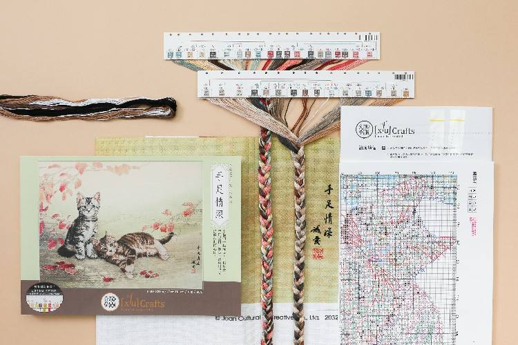 Kit de point de croix 2026-0128, motif européen KITTY WALK, tissu Aida 100% coton, design d'animaux de dessin animé écologique