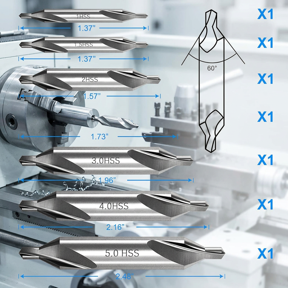 2026 Lot de 6 forets de centrage HSS et outils de fraisage combinés à 60 degrés pour le travail du bois et du métal