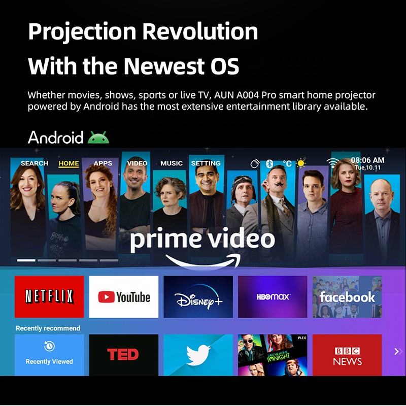 Mini-projecteur portable Android 2026 A004 Pro 1080P compatible 4K LCD pour cinéma maison et salle de classe avec Google GTV Netflix – Prix abordable
