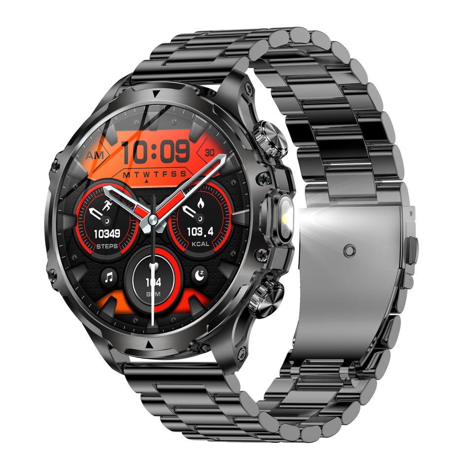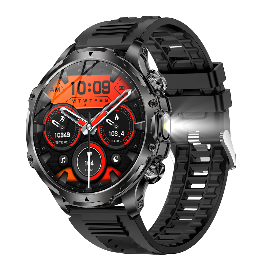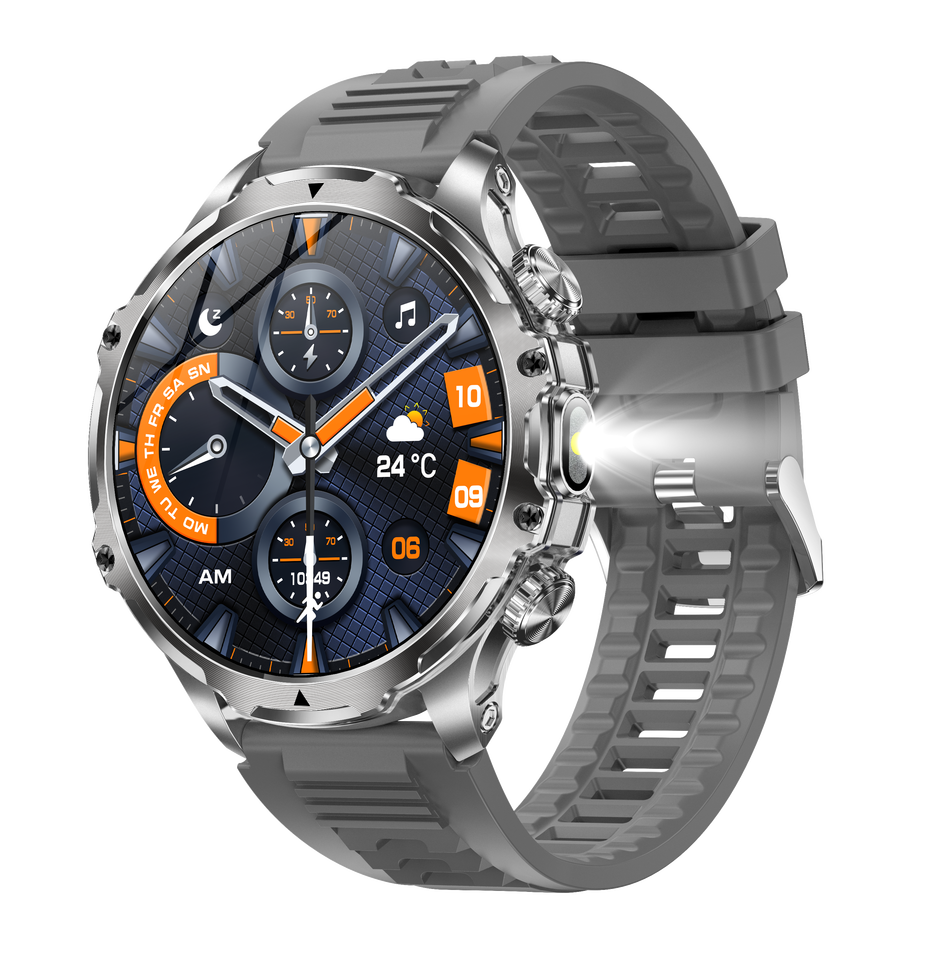 Montre connectée AK75 2026, 1,85 pouce, lampe torche, étanche, pression artérielle, oxygène sanguin, batterie 700 mAh, montre connectée de sport pour hommes, pour activités de plein air
