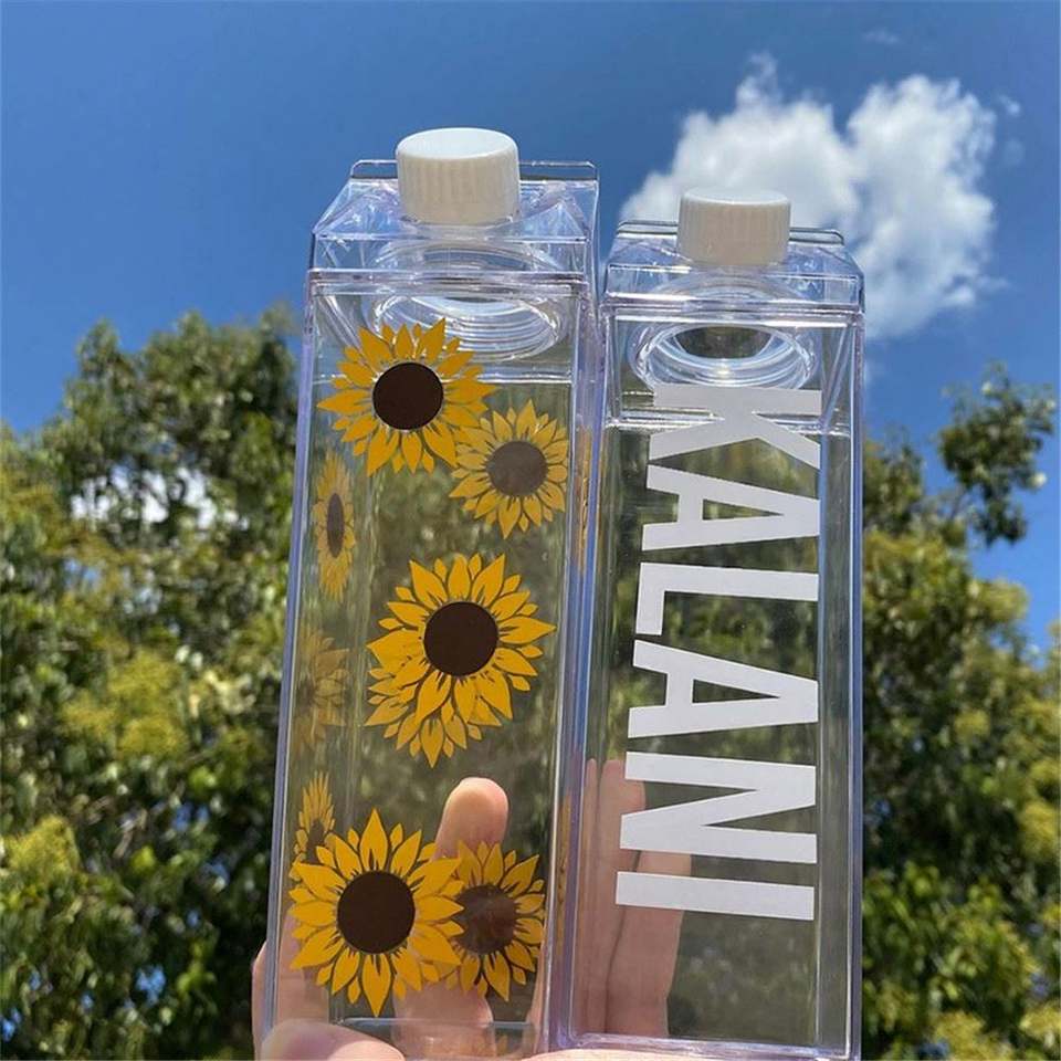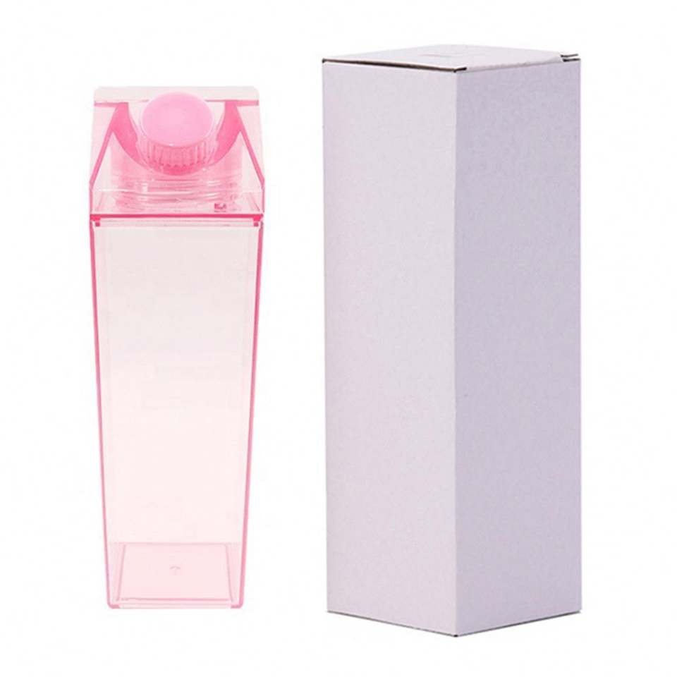 2026 Amaozns 500/1000Ml BPA Free Leak Proof Custom Reusable Square Clear Cute Milk Carton Plastic Water Bottle