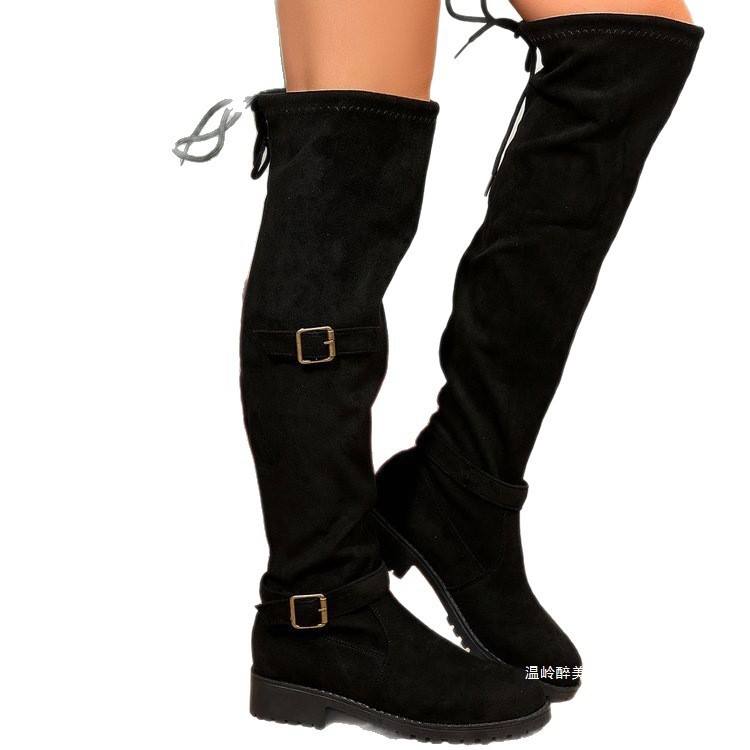 Nouvelles bottes mode automne-hiver 2026 pour femme, grande taille, montantes à boucle, en daim froncé et talon épais