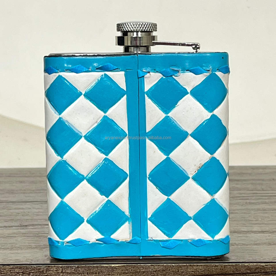 Flasque à alcool en cuir à carreaux travaillé à la main avec acier inoxydable