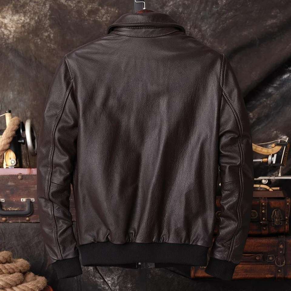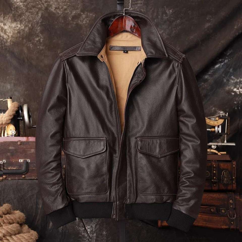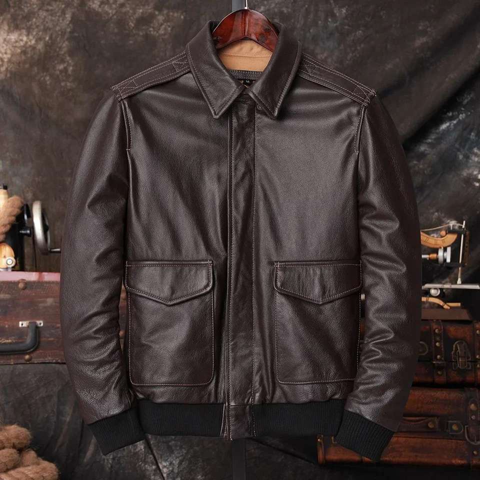 Veste Homme 2026 de Qualité Supérieure en Cuir Véritable avec Col Montant et Logo Frontal, 100% Cuir de Vache Marron Foncé Style Vintage Varsity