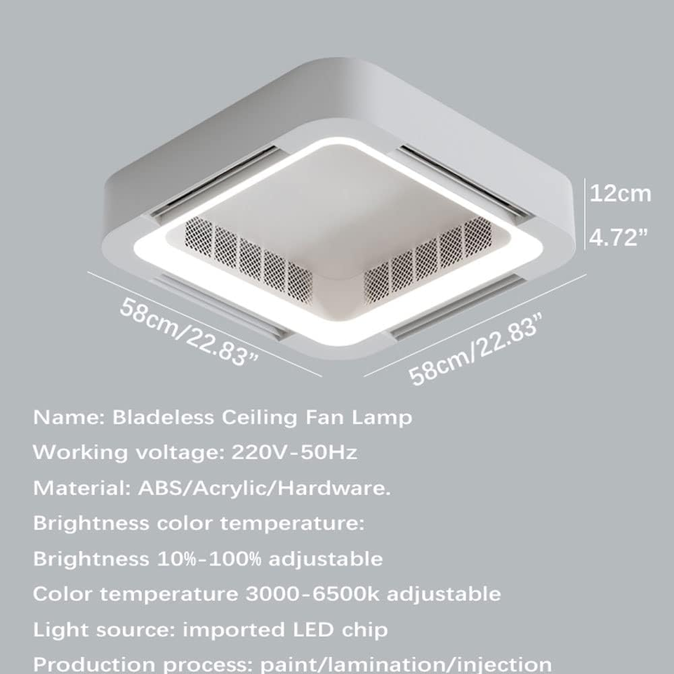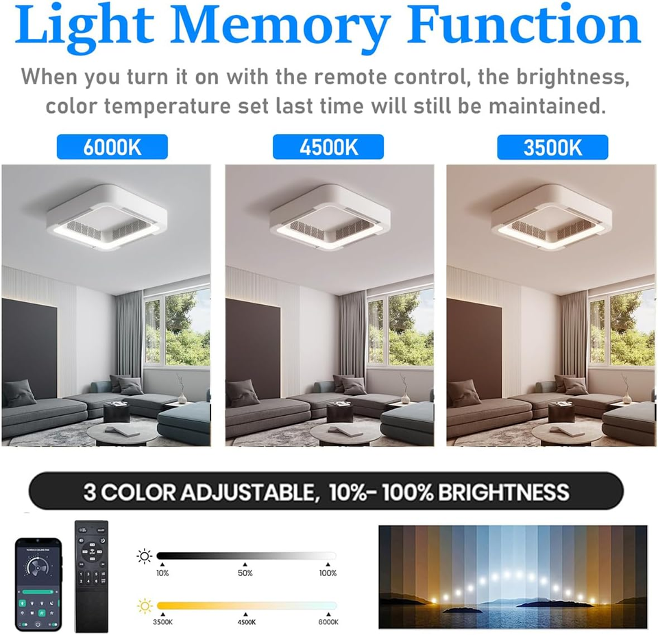 Ventilateur de Plafond Sans Pales 2026 avec Lumière Encastrée, Contrôle Intelligent par Application, Plafonnier LED Carré Dimmable avec Télécommande