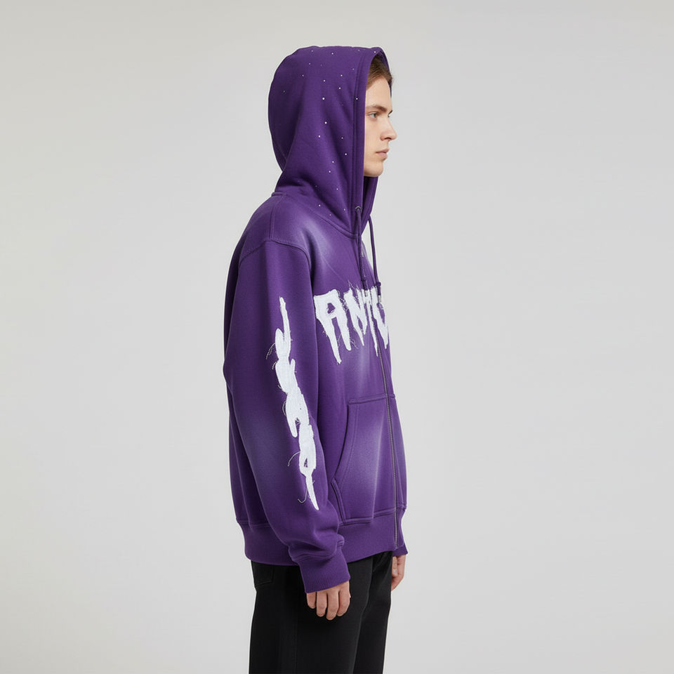 zip up hoodie washed fleece