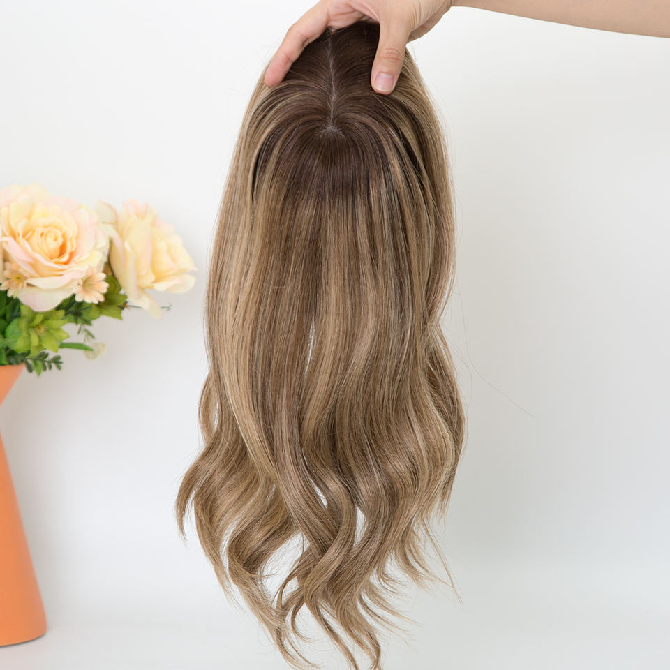 Topper de cheveux humains lisses et respirants de haute qualité 2026, cheveux Remy européens, couleur balayage, finition soie