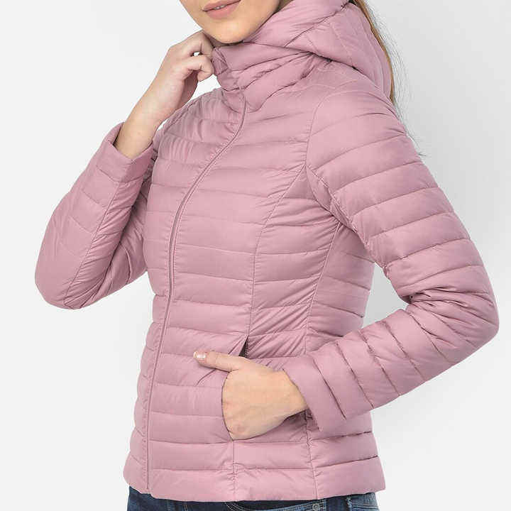 Doudoune d'hiver respirante 2026 pour femme, chaude, à capuche, en polyester, coupe ajustée, avec broderie et tissu satiné