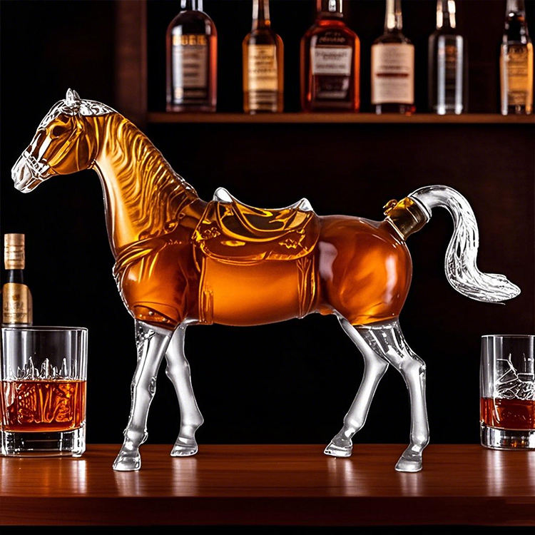 Bouteille d'art en verre vide en forme de cheval, 1L, pour le whisky, la vodka et la tequila, thème du zodiaque chinois 2026