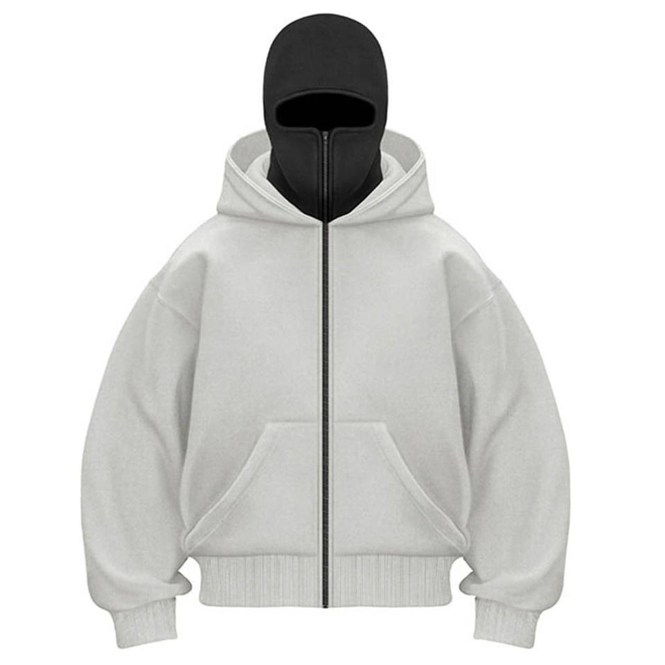 2026 Custom 450gsm Zip Balaclava Hoodie for Men High Quality 100% Cotton Streetwear with Embroidered Technics Plain Ninja Hoodie